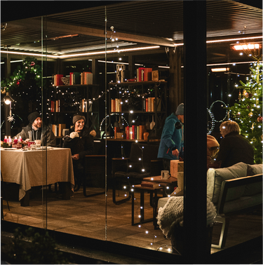 Zusammensein in wunderschöner Umgebung. Verbringe Zeit mit Freunden und Familie an einem warmen, geschützten Platz – auch bei kaltem Wetter.