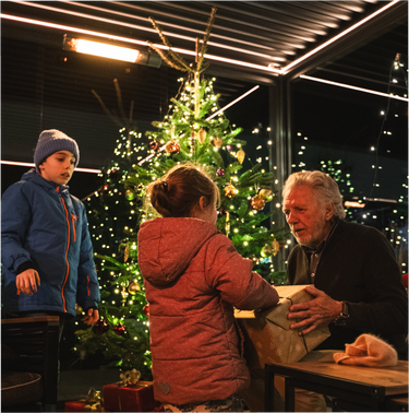 Weihnachten feiern. Lade Familie und Freunde ein und erlebe unvergessliche Wintermomente unter deiner Pergola.