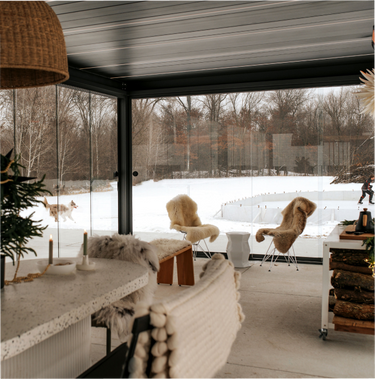 Entwickelt für Komfort im Winter. Du kannst deine Pergola mit Glaswänden umschließen und so Zeit im Freien genießen – sogar an kalten Tagen.