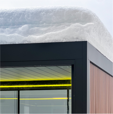 Gebaut für den Winter. Entwickelt, um schweren Schneelasten standzuhalten, zeigt sich deine Pergola gleichzeitig in einem eleganten, modernen Look.