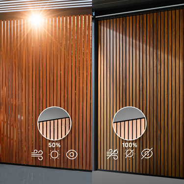 UV-beständig, rostfrei und wasserdicht – diese Aluminium Lamellenwand ist für jedes Wetter und jede Jahreszeit gemacht. Kein Abbau, keine Lagerung.